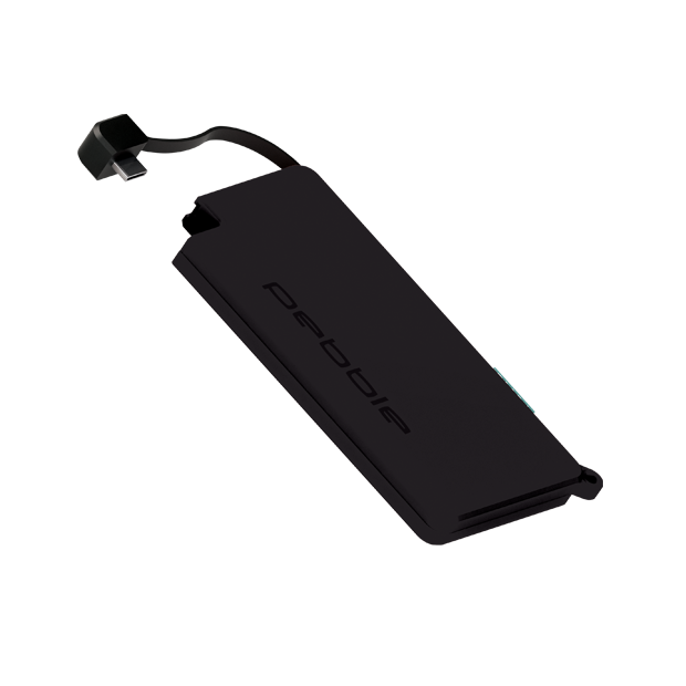The Pebble Pokket is a micro-sized, ultra-slim emergency power bank small enough to fit in your pocket unnoticed. Or alternatively, attach the Pebble Pokket to your keyfob. The Pebble Pokket power bank will give your device up to 25% battery life (based on an average smartphone) and is perfect for any occasion where carrying a large bag is not convenient. Designed in the UK.