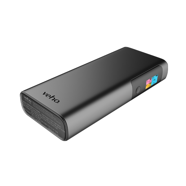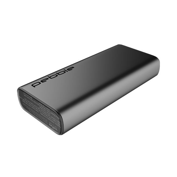 The Pebble PQ21 digital power bank for fast charging compatible devices with dual USB ports, charges multiple devices with up to 100W output. The Universal USB-C charging port (PD) fast charges most portable devices with up to 20V output (smartphones, tablets, mini notebooks, and laptops). Features intelligent, real-time status that gives you full control with data from both charging ports and remaining power. Designed and finished in a sleek brushed metal casing, for business and travel.