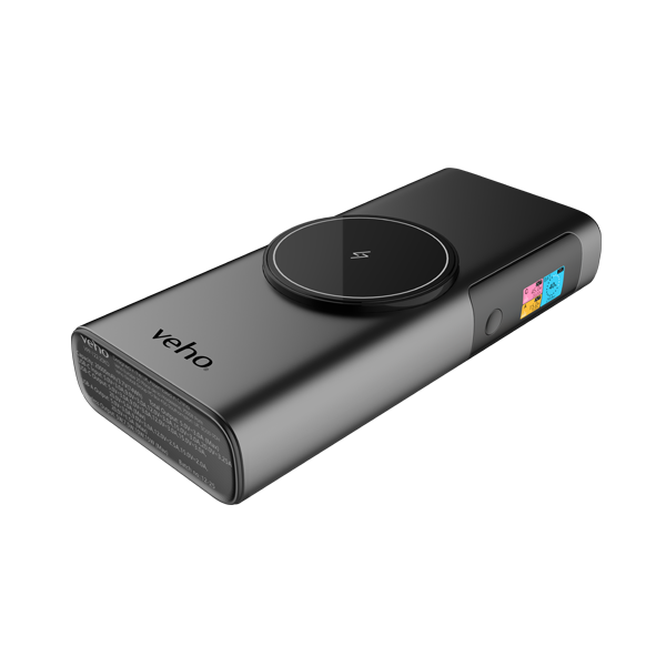 The Pebble PQ22 wireless digital power bank for fast charging compatible devices with dual USB ports, and a wireless charging pad, charges multiple devices with up to 100W output. The Universal USB-C charging port (PD) fast charges most portable devices with up to 20V output (smartphones, tablets, mini notebooks, and laptops). Features intelligent, real-time status that gives you full control with data from both charging ports and remaining power. Designed and finished in a sleek brushed metal casing, for business and travel.