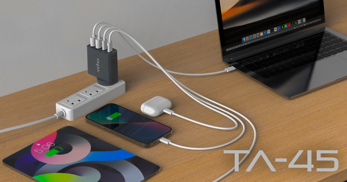 The Veho TA-45 is a 4 port multi-region (150 approx countries) universal USB-A and USB-C power charger for all USB devices, including smartphones (including iPhones), notebooks, cameras, sat nav etc. With up to 45W power output and a travel carry pouch. Compatible in 150 countries including USA, Canada, Mexico, Brazil, Europe, Australia, New Zealand, Japan, China, Hong Kong, Singapore, Central America, UK & Ireland, Cyprus, Malta plus many more.