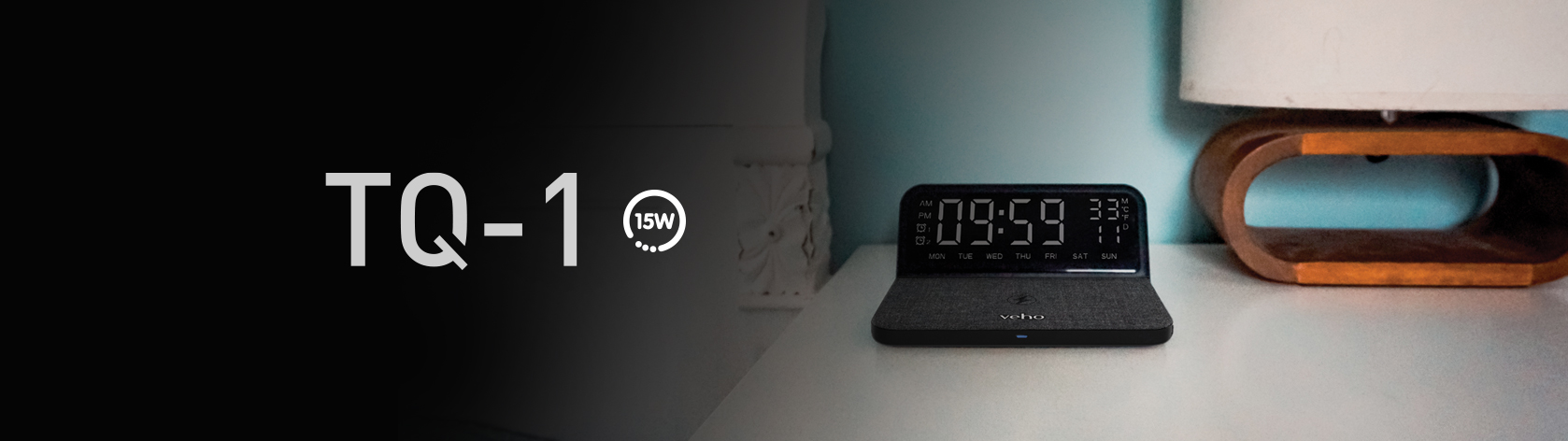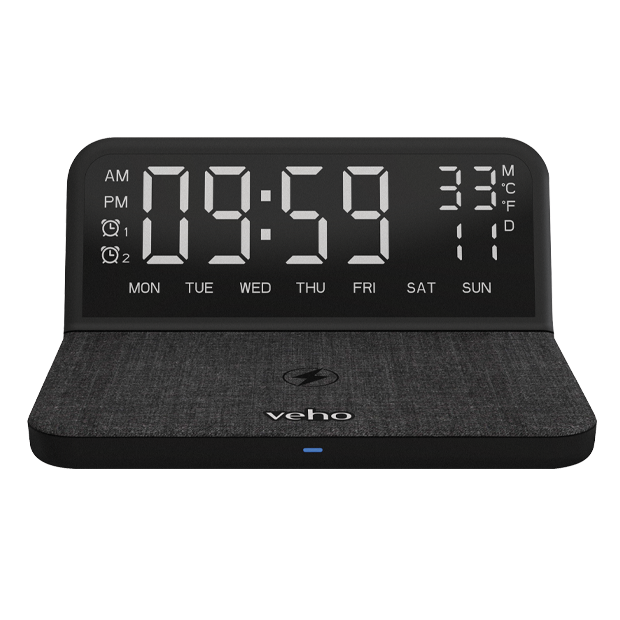The Veho TQ-1 Digital Alarm Clock with built-in Qi wireless charging is sleek and modern, designed to fit into any bedroom, or on your travels. The TQ-1 supports wireless charging at 5W/7.5W/10W/15W and is compatible with any device with all Qi wireless smartphones. Widely compatible with: